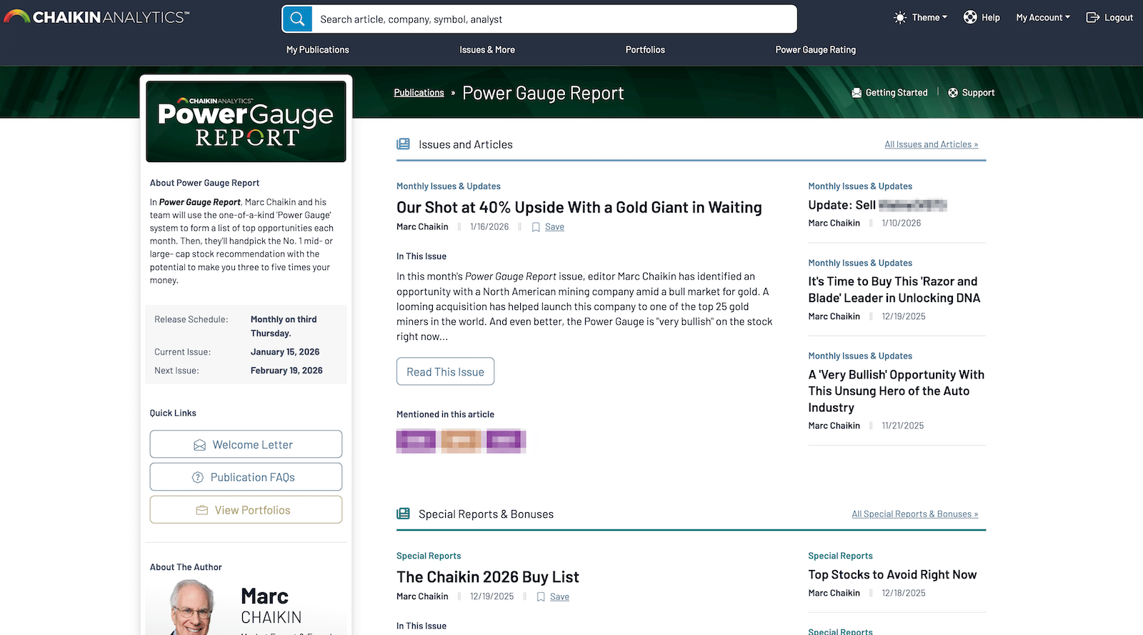 Once you join the Power Gauge Report, you get access to the core components of the service: the monthly newsletters, the model portfolio, and the Power Gauge rating tool.