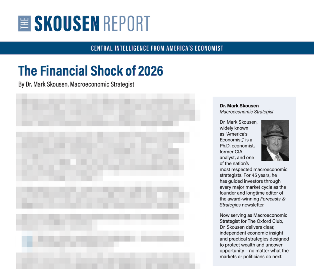 The Skousen Report is a macro-driven investment newsletter published by Mark Skousen through the Oxford Club. Its core purpose is to help you understand the bigger economic forces moving the market, protect your wealth during uncertain periods, and identify timely opportunities before they become obvious to everyone else.